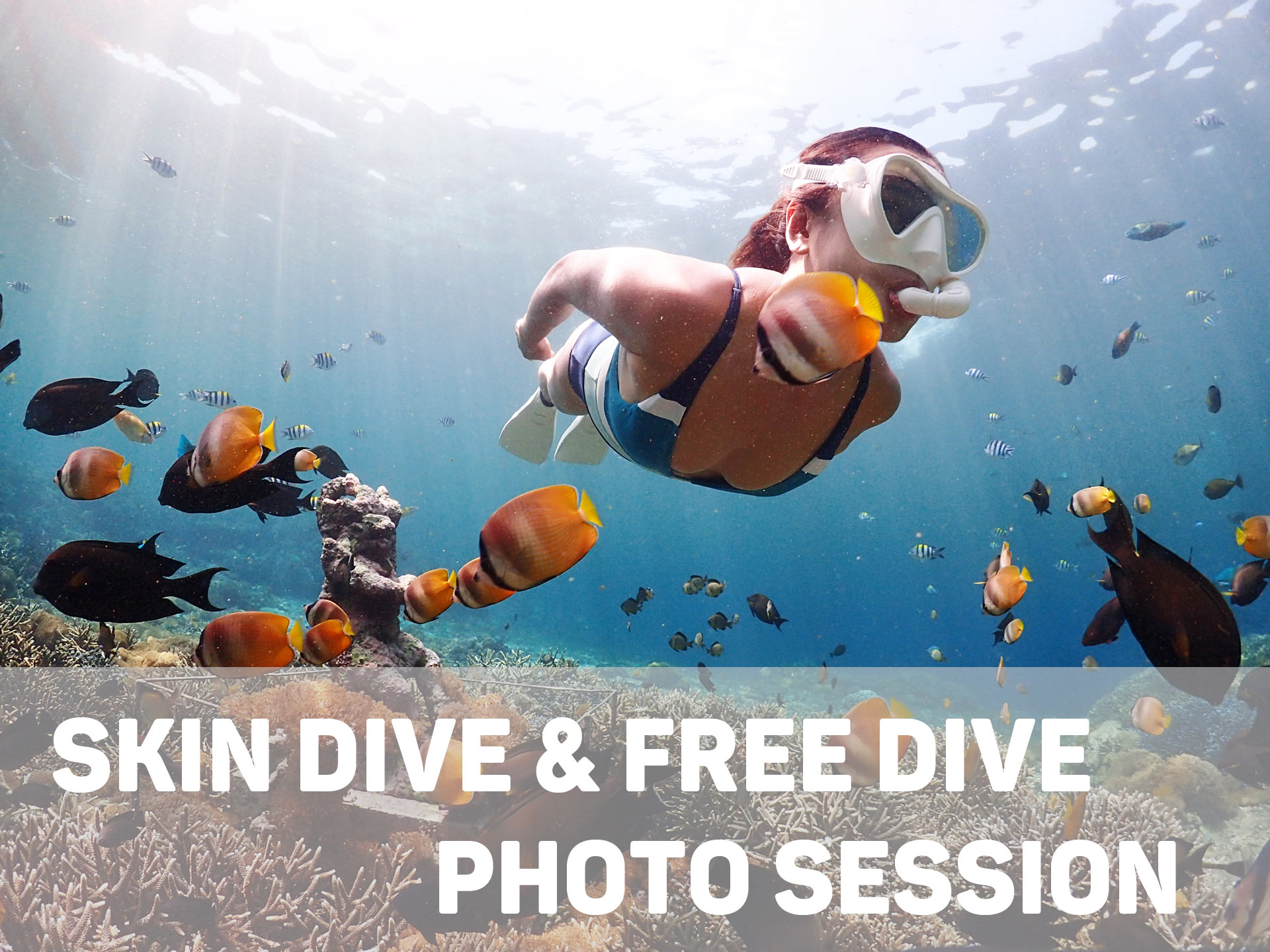 水中撮影も含めた、自由に泳げるスキンダイビングセッション
