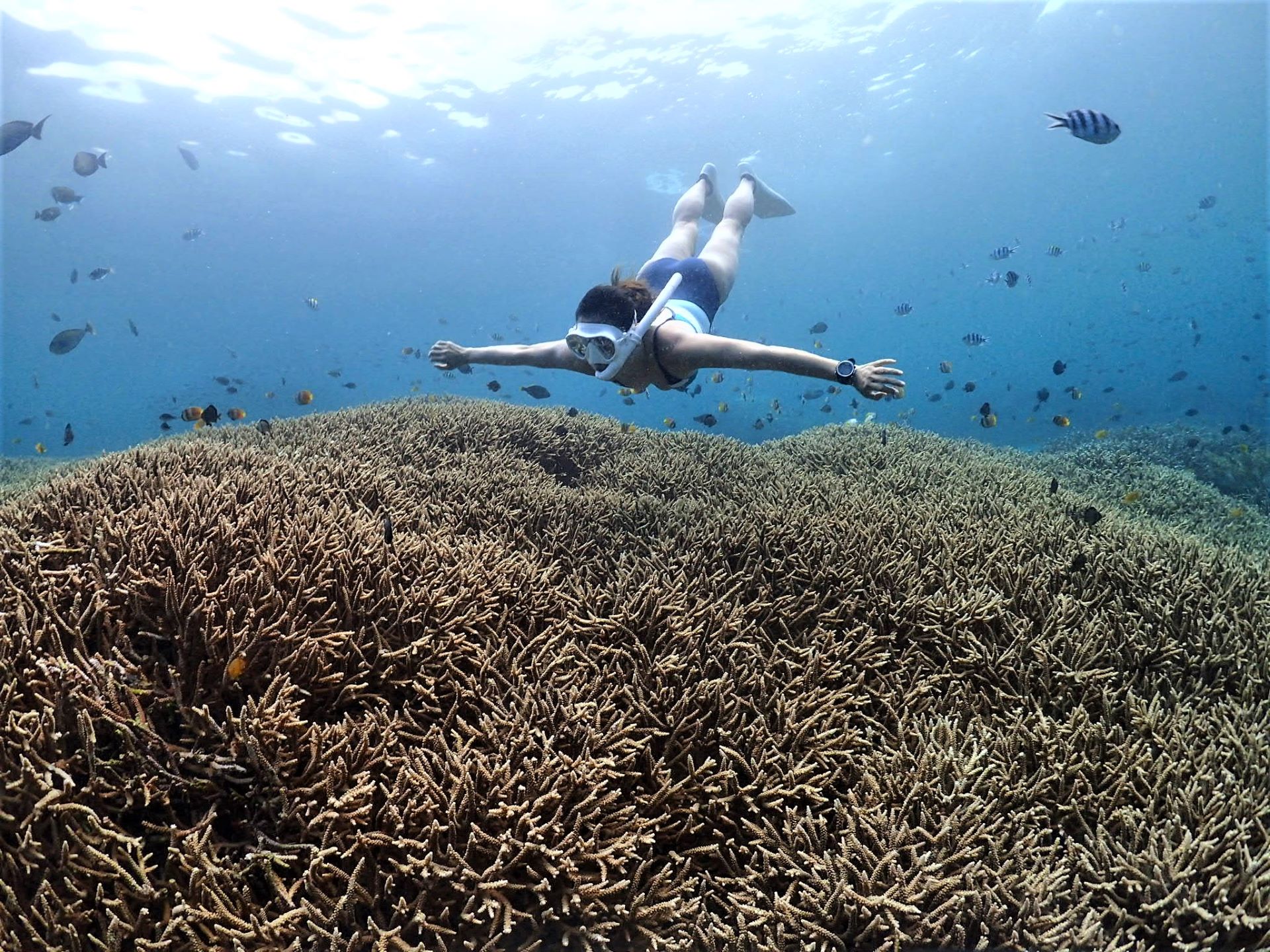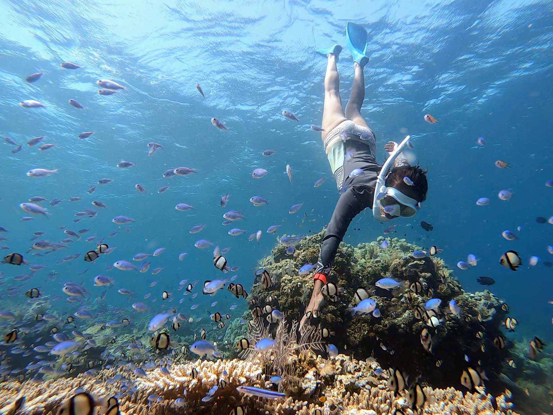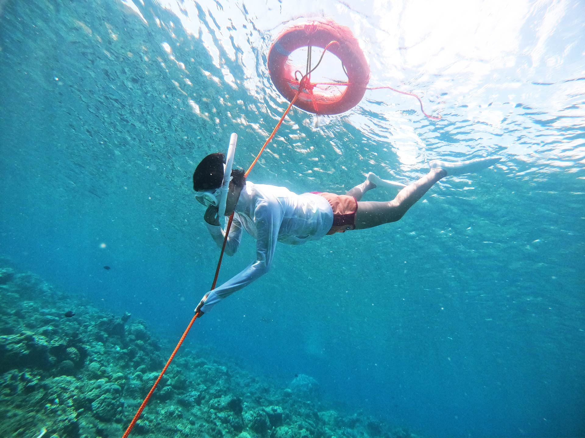 • 呼吸と心を整え、新鮮な空気をいっぱいに吸って、海に潜ることを繰り返すうちに、余計な力は徐々に抜け、自由に海の中を楽しめるようになっていきます。