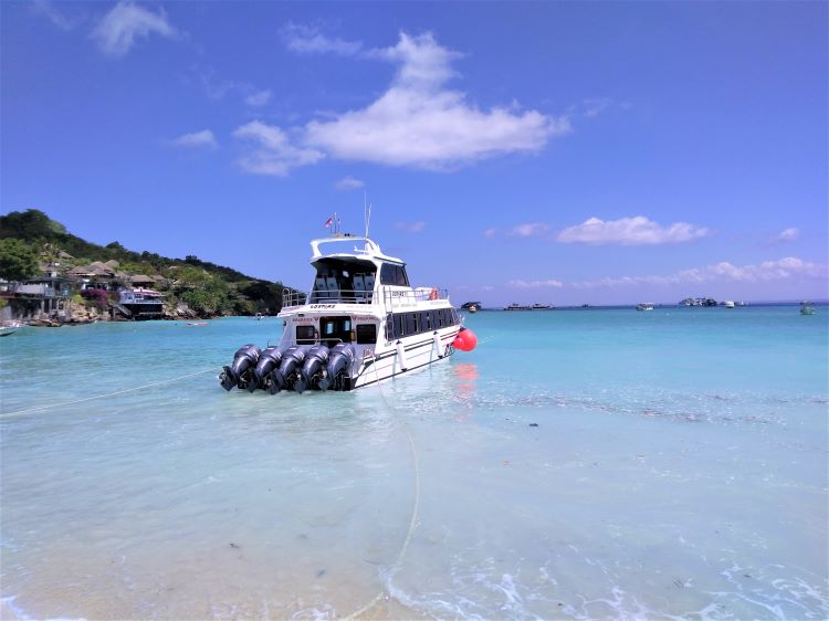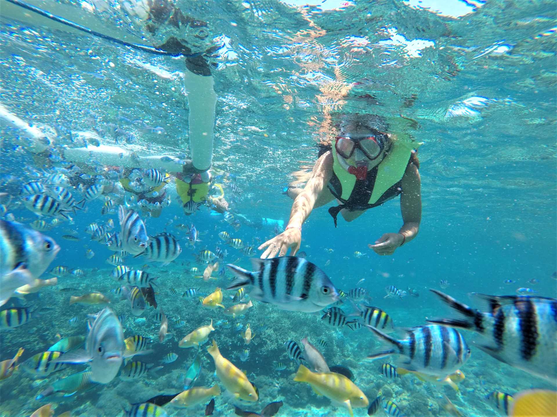 レンボンガン島上陸後、ボートでスキンダイビングをします