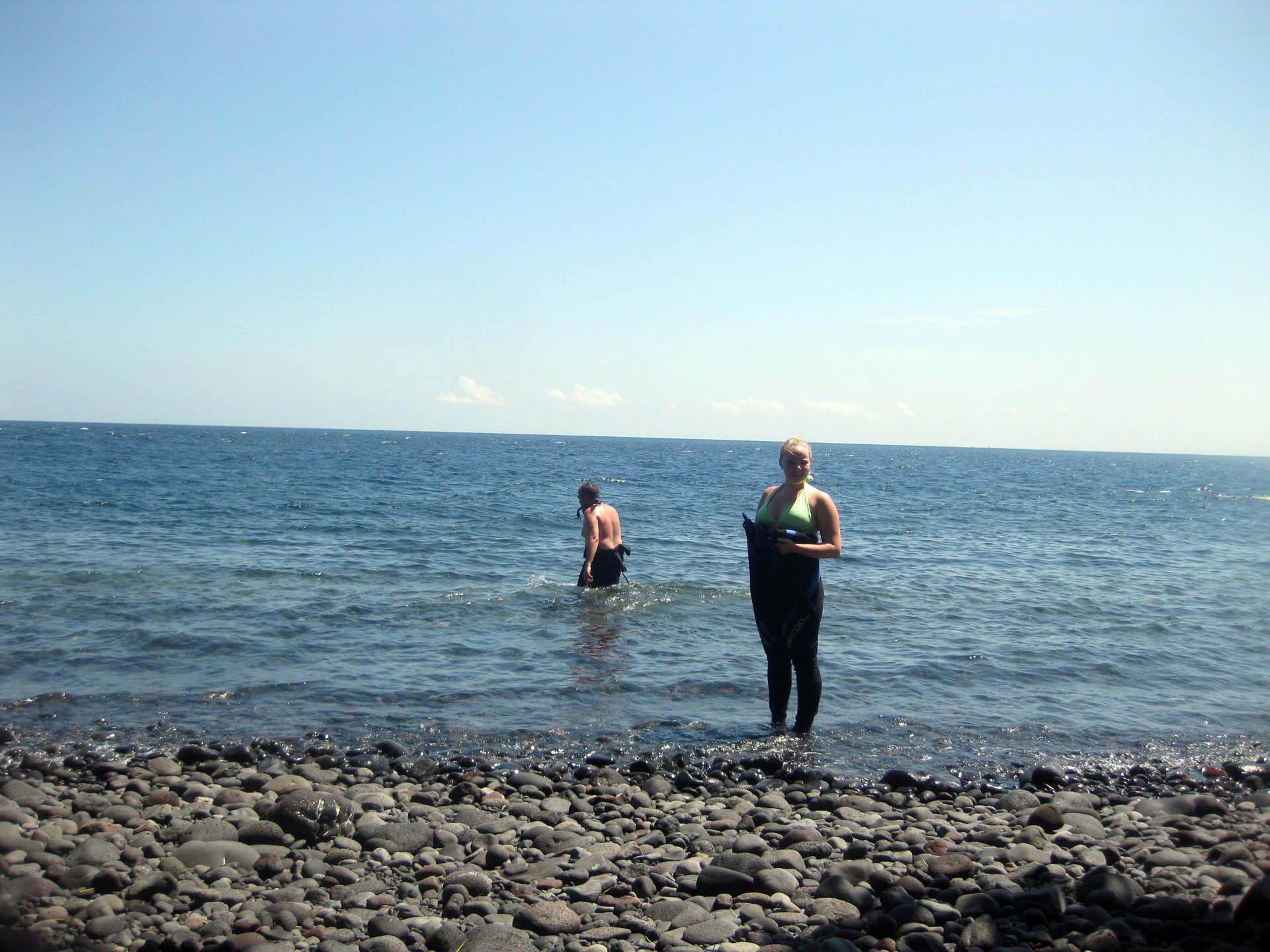 • 海に入ったら、フィンを使った美しい泳ぎ方、無駄のない水中への潜り方、実際の耳抜き練習などをインストラクターと共に行い、最初は3mを目標に海の中にアプローチしていきましょう。