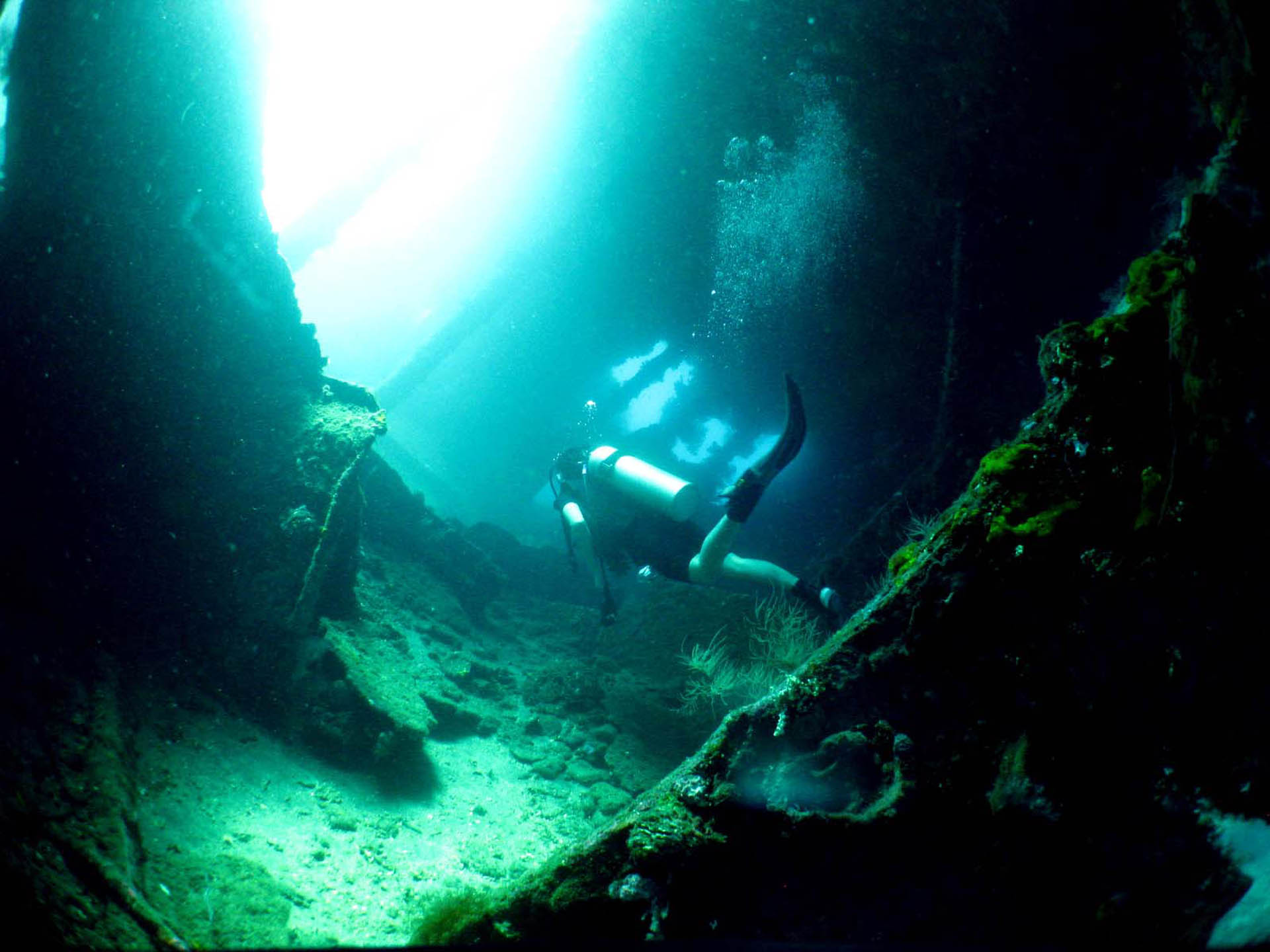 • 時が経つと共に船体はカラフルなコーラルに覆われ、今では魚たちの楽園に、沈没船の中に入ると船体の隙間から青い光が差し込んで神秘的な美しさ